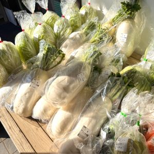 店頭には、とれたての新鮮野菜が豊富にそろっています。今が旬の冬野菜がどっさり入荷中です。